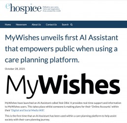 MyWishes have launched an AI Assistant called ‘Ask Ollie’. It provides real-time support and information to MyWishes users. This takes place whilst someone is making plans for their ‘Online Accounts’ within their ‘Digital and Social Media Will’.